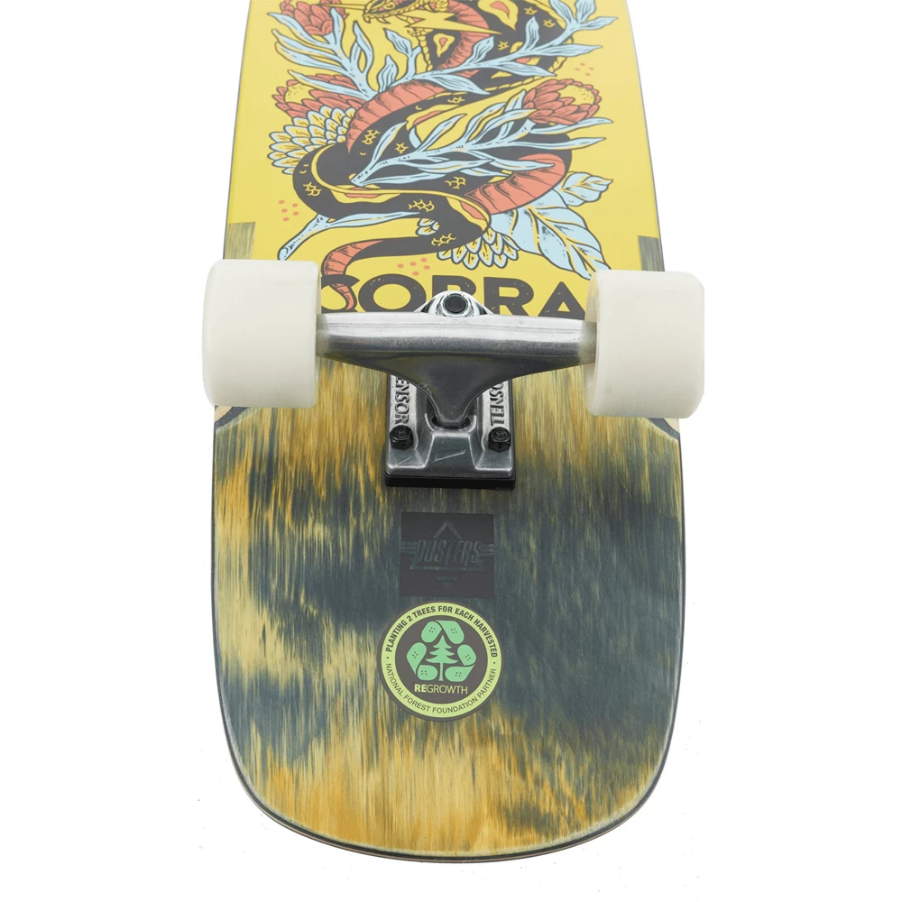 Il cruiser Cobra di Duster è un vero e proprio punto di riferimento per tutti gli appassionati di skate, completo di tutto il necessario per permetterti il massimo divertimento senza alcuna preoccupazione, personalizzato dalla grafica originale Dusters donando quel tocco in più in fatto di stile.