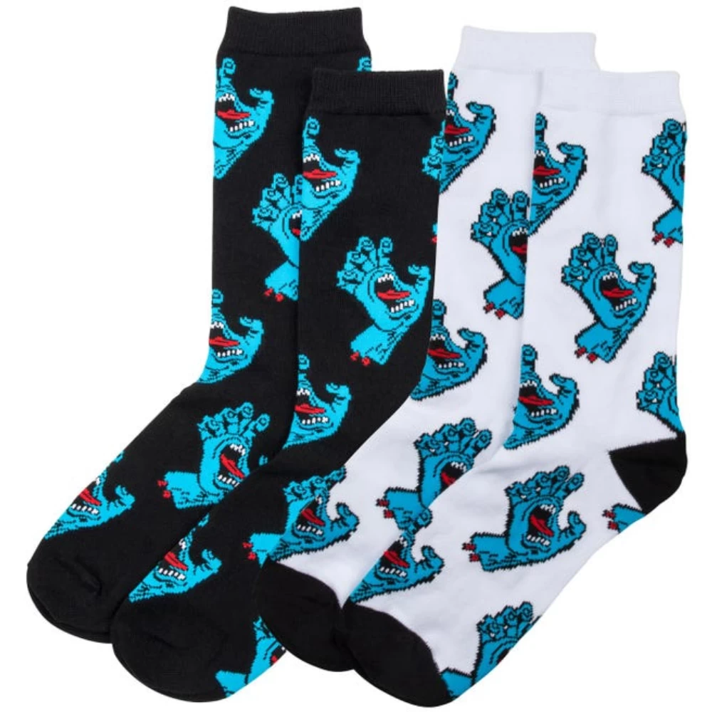I calzini Multi Hand di Santa Cruz sono personalizzati dal dettaglio della mano “Screaming Hand” che si ripete in tutta la superficie, nella confezione sono presenti due paia di calzini, uno per ogni colore.