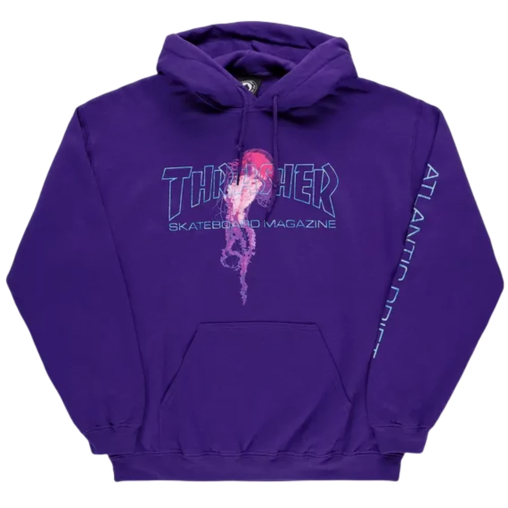 La felpa nasce con la collaborazione tra Thrasher e Atlantic, realizzata con cappuccio e pratica tasca a marsupio, caratterizzata dal logo che combina lo stile inconfonibile dei due, offre il massimo comfort che è l’ideale per le lunghe session di skate.